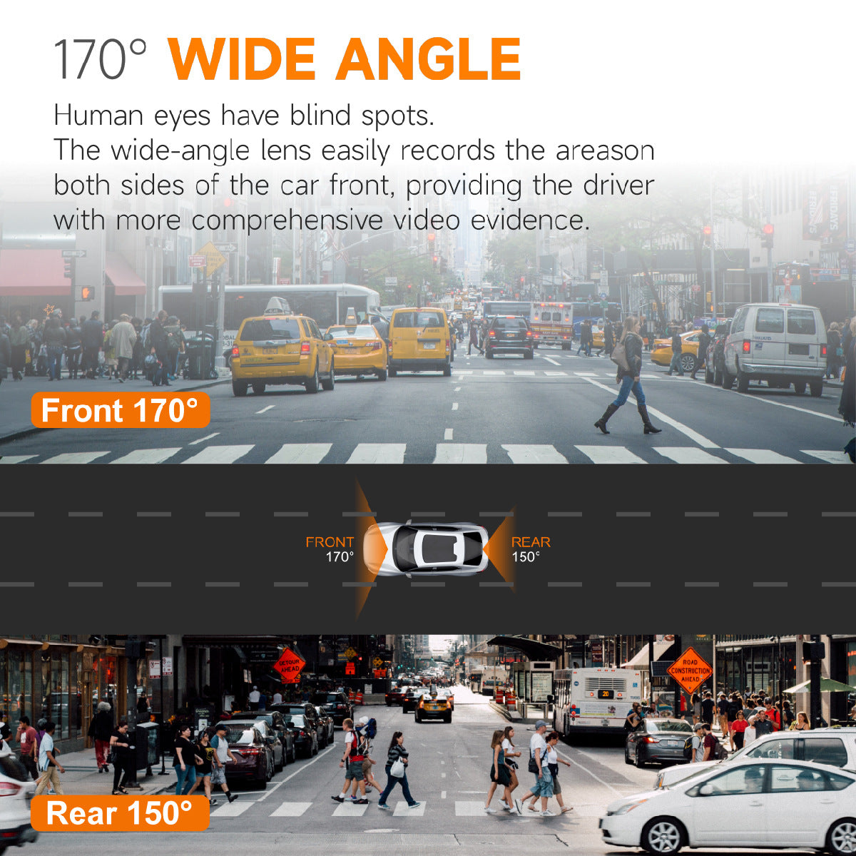 透過我們先進的 WDR(寬動態範圍)技術,增強型夜視功能讓您在低光源環境下也能自信駕駛。先進的影像感應器和優化的光圈設計,即使在充滿挑戰的夜間或陰暗環境中也能拍攝出明亮清晰的畫面,提供可靠的全天候錄影保障。